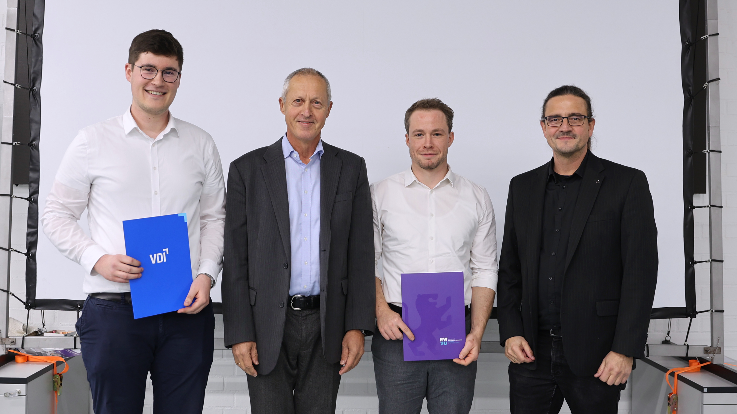 The prize from the Verein Deutscher Ingenieure (VDI) was awarded to Jan Ahrens, a graduate of the bachelor's degree course in Automotive Engineering. For his thesis, he built a detailed model of the current Formula Student racing car. Jan Ahrens used this model to carry out various measurements in the wind tunnel. From the results, conclusions could be drawn about the original vehicle, allowing it to be optimized. "A prime example of multidisciplinary engineering", as Dr. Thomas Oberländer from the VDI, who presented the award, sums up.