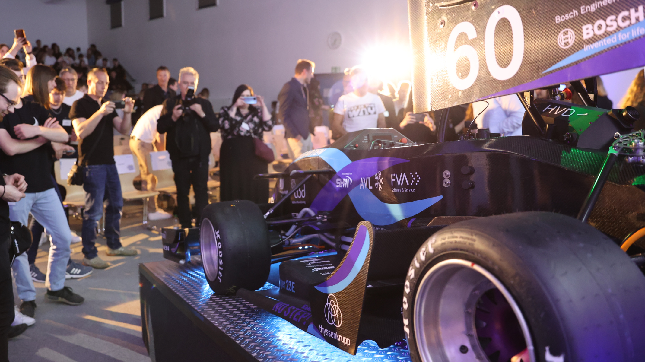 After the review, the evening approached the unveiling of the new Stinger. Formula Student thanked everyone involved for their support. A big thank you also went to Professor Dr. Thomas Spägele, Rector of RWU. The latter congratulated the team for their commitment and ambition. "It is not a matter of course that we are allowed to sit here today," said the rector. Not at every university has Formula Student lasted the last few years. All the more, he said, it fills him with pride that Formula Student is presenting its second electric race car in a row today.