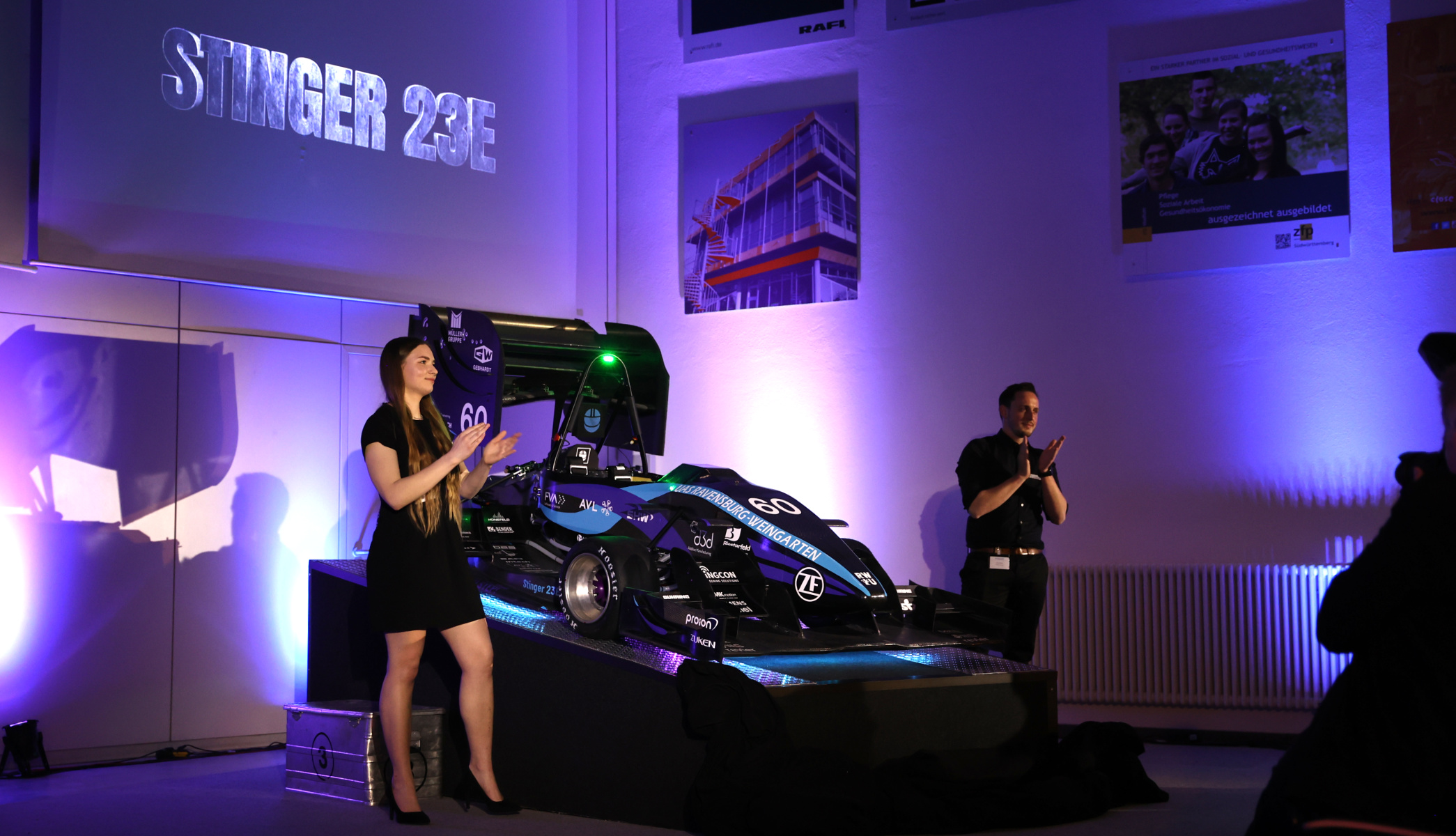 Weingarten - In a festive atmosphere, the Formula Student Team Weingarten (FSTW) presented the new Stinger 23E on Friday, May 5, 2023. Under the team leadership of Sara Klink and Jonas Eckle, a racing car with electric drive was created for the second time in a row. This year also marked the 15th anniversary of FSTW. For 15 years, students at RWU have been planning, developing and constructing racing cars - from design and assembly to testing on the race track. Guests included friends and family, sponsors, the Friends of FSTW, as well as alumni and founding members. Dennis Causevic and Carine Vieweger led through the evening.