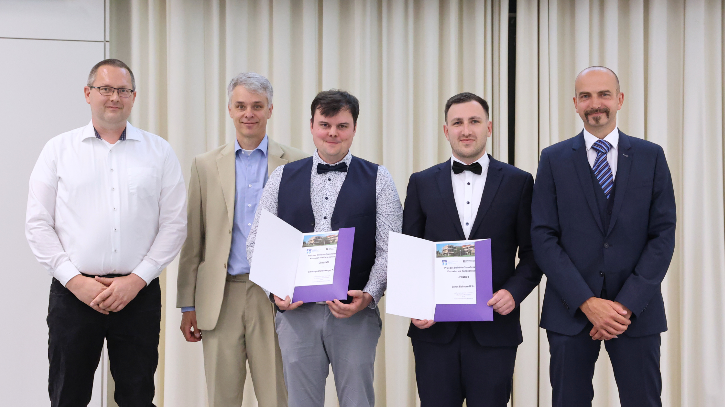 It was not only the certificates that were handed over that evening. Several students were also honoured for their outstanding achievementsThe Steinbeis Transfer Centre Award was given to two RWU students at once: Christoph Dietenberger and Lukas Eichhorn. Both are graduates of the Master's programme in Product Development in Mechanical Engineering and in their Master's theses they jointly designed a printer for metal-additive production. The prize was presented by Benjamin Kröger, Managing Director of the Steinbeis Transfer Centre Materials Corrosion & Corrosion Protection.