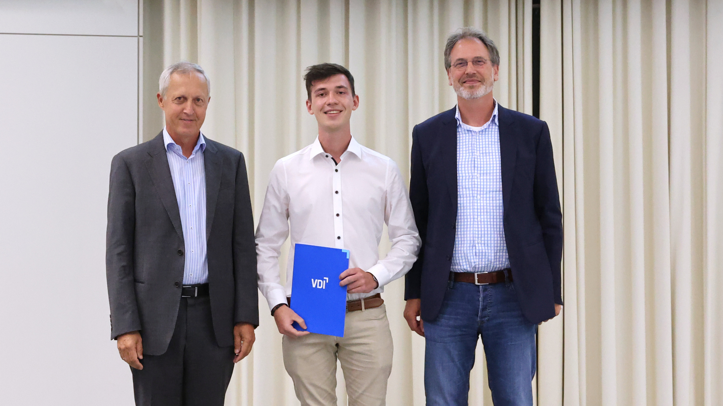 The third prize of the evening went to Markus Beck, a graduate of the Bachelor's programme in Mechanical Engineering. He received the sponsorship award of the Association of German Engineers (VDI) for "outstanding performance": In his thesis, he dealt with a multi-pressure system for energy-efficient use in electric drive trains. The prize was presented by Dr Thomas Oberländer from the VDI Lake Constance District Association.