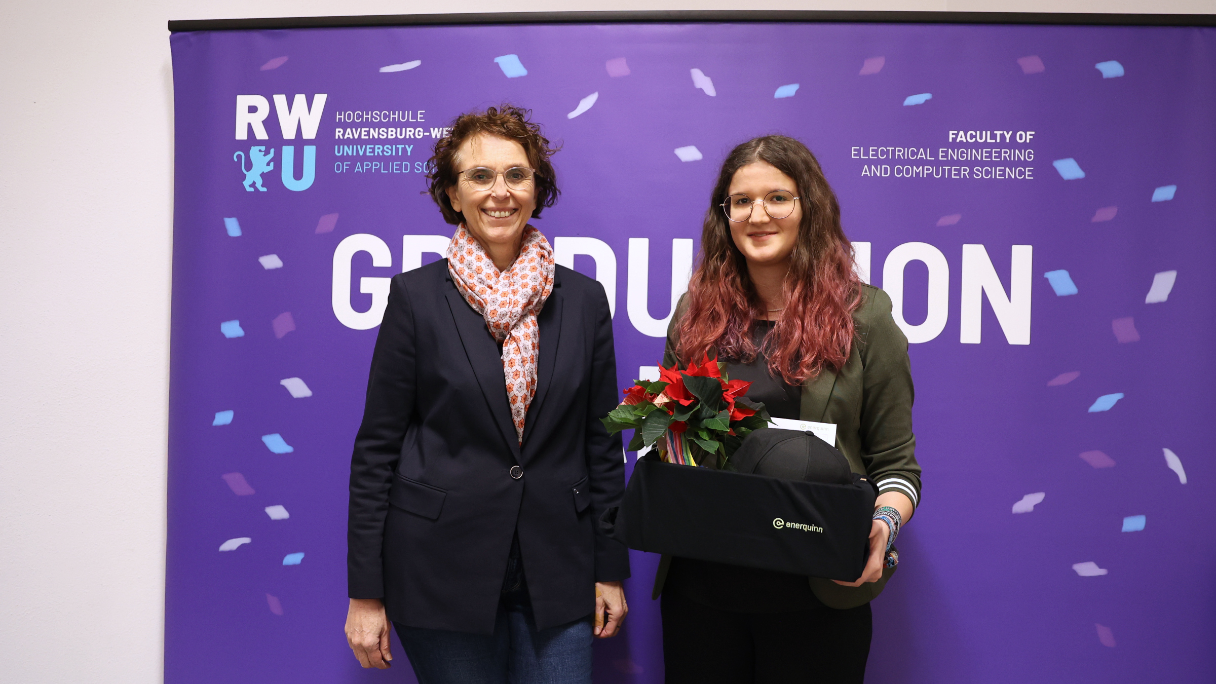 Sarah Erath, a graduate of the bachelor's degree program in Electrical Engineering and Computer Science, was honoured with the enerquinn Award. This was presented by Managing Director Heike Ewert, who highlighted the relevance of women in STEM fields.