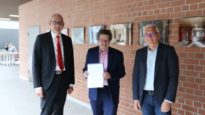 Professor Dr. Gerhard Krönes wurde für 40 Jahre im öffentlichen Dienst geehrt. Die letzten 25 davon lehrte er Betriebswirtschaftslehre an der RWU.