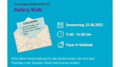 Informieren Sie sich beim Gallery Walk des Studiengangs Soziale Arbeit B.A. über Praxisstellen und erhalten Sie Infos aus erster Hand!