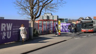 Seit wenigen Tagen macht die RWU Hochschule Ravensburg-Weingarten mit einer Bauzaun-Werbeanlage im Weingartner Stadtraum auf sich aufmerksam.