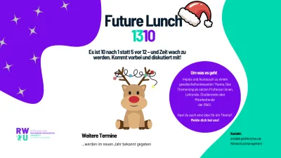 Insgesamt sechs mal in 2025 fanden im Rahmen des FutureLunch1310 Austausch und Vernetzung zu zukunftsrelevanten Themen statt. Wir wünschen Ihnen frohe Weihnachten und sind am 14.01.2026 mit dem Thema E-Mobilität wieder zurück.