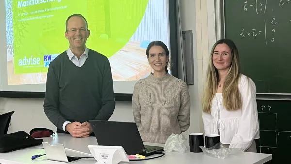 Organisationen müssen Entscheidungen treffen und Marktforschung soll dabei helfen, die Qualität von Entscheidungen zu verbessern. In dem Bachelor-Studiengang Betriebswirtschaftslehre und Management boten Lena Rothenhäusler und Hannah Stelzer von der Firma advise im Rahmen eines Workshops Einblicke in die Welt der Marktforschung. Dazu bearbeiteten sie mit den Studierneden ein typisches Marktforschungsprojekt.