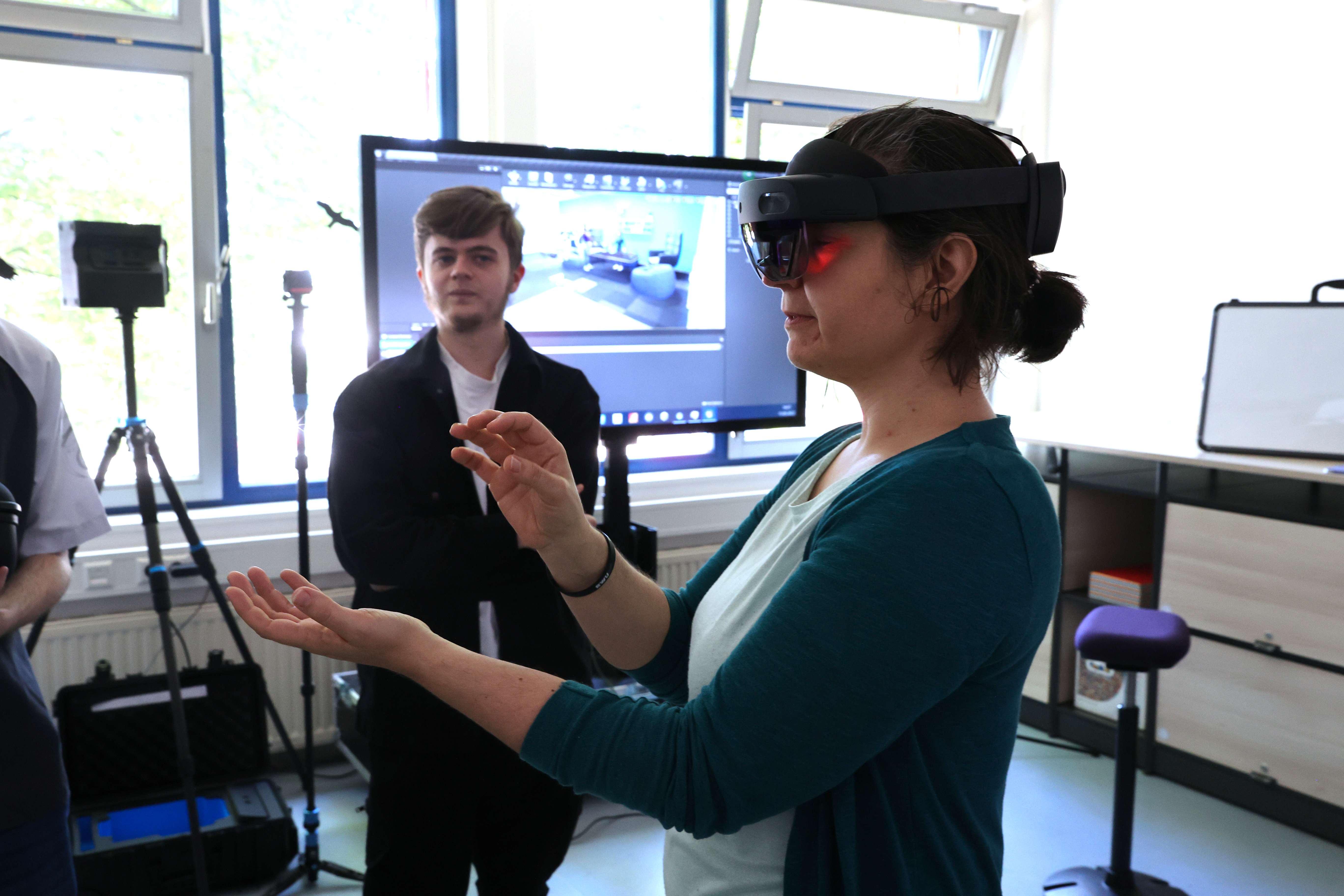 Diese Technik wird zum Beispiel im Immersive LearningLab eingesetzt. In ihm werden virtuelle und erweiterte Realitäten genutzt, um Studierende Lern- und Übungssituationen realistisch erleben zu lassen. „Lernsituationen, die in der Realität nur schwer zu reproduzieren sind, können damit überzeugend simuliert und effizient eingeübt werden“, erklärt Markus Rossa, Mitarbeiter der Hochschuldidaktik und Verantwortlicher für das immersive Lernen. Im Studiengang Soziale Arbeit könnten damit etwa Beratungssituationen erlebt und reflektiert werden, während in der Fahrzeugtechnik komplexe Antriebsstränge visualisierbar und virtuell manipulierbar seien. „Wege, wie die VR- oder AR-Methoden in die Lehre einzubinden sind, können die Lehrenden gemeinsam mit uns ausprobieren und entwickeln“, so Rossa.