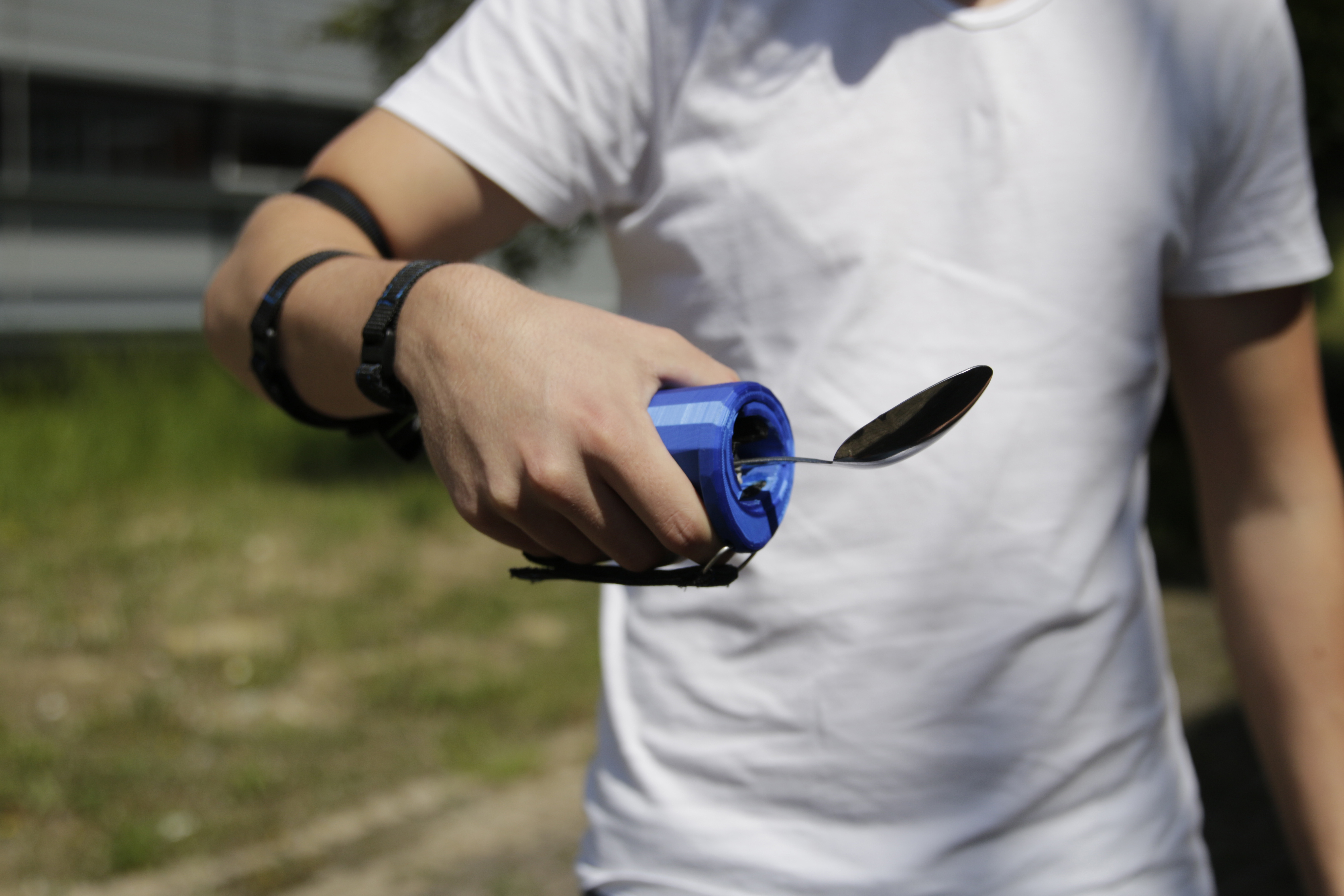 Ein Beispiel für die entstandenen Produkte ist der ergonomische Handadapter. Manche Patienten und Patientinnen leiden an unkontrollierten und erhöhten Muskelanspannungen, etwa in Hand und Arm, sogenannte Spastiken. Alltägliche Situationen, wie der Umgang mit Besteck oder das sichere Halten von Gegenständen, werden dadurch erschwert. Der Handadapter zielt zum einen darauf ab, den Griff der Betroffenen zu stabilisieren, zum anderen soll bei der Nutzung ein Trainingseffekt erzielt werden. Das ermöglicht mehr Autonomie im Alltag.