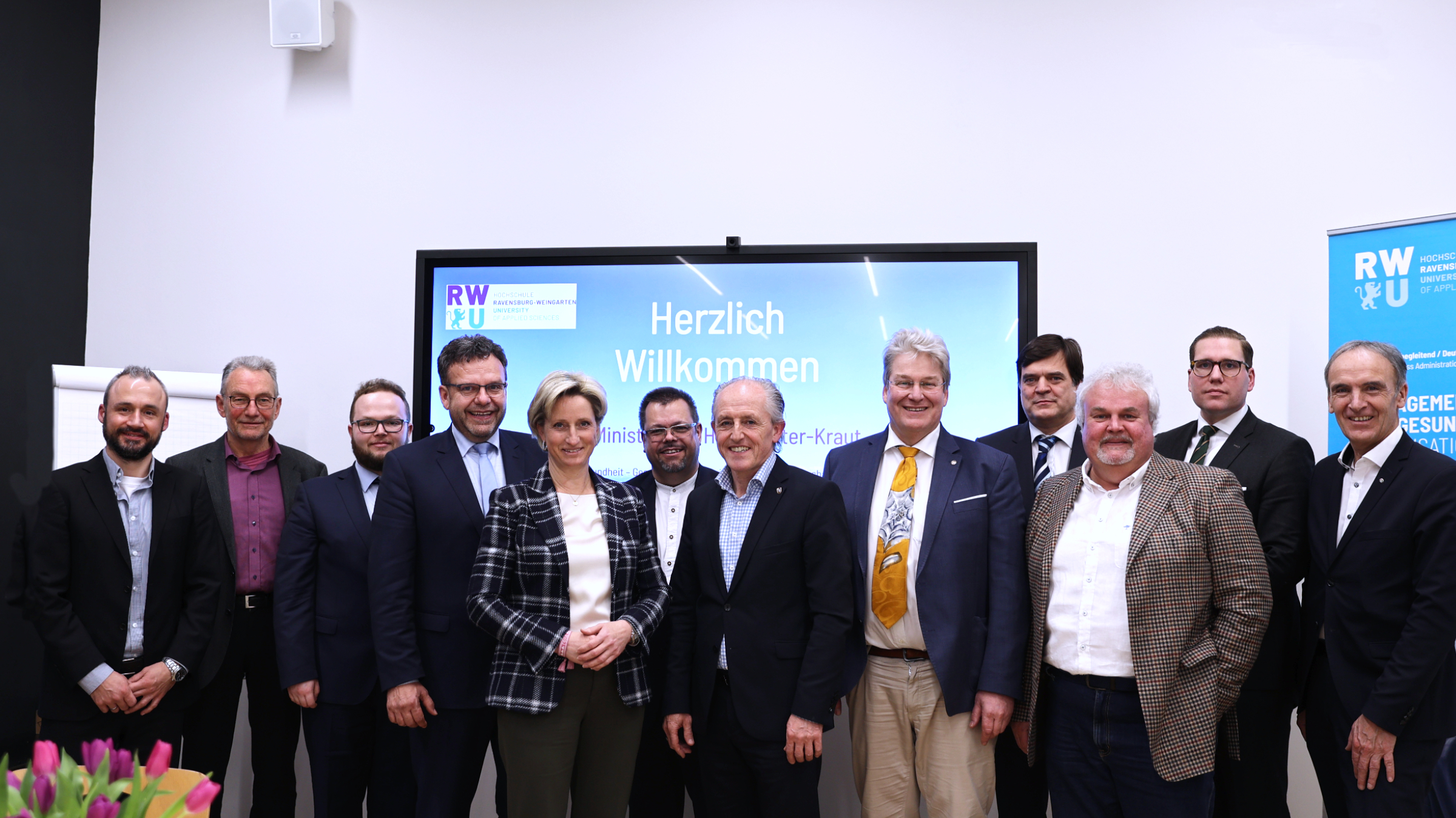 Weingarten – Anfang März stattete Dr. Nicole Hoffmeister-Kraut (CDU), Ministerin für Wirtschaft, Arbeit und Tourismus des Landes Baden-Württemberg, der Hochschule Ravensburg-Weingarten (RWU) einen Besuch ab. Sie folgte damit der Einladung von Professor Dr. Axel Olaf Kern, Leiter des berufsbegleitenden Master-Studiengangs Management im Sozial- und Gesundheitswesen. Zu diesem Treffen waren ebenfalls zahlreiche Vertreter regionaler Unternehmen des Gesundheitssektors eingeladen. Neben dem Austausch zwischen Ministerium, Hochschule und Unternehmen ging es thematisch um die wirtschaftliche Bedeutung des Gesundheitssektors in der Region sowie dessen Chancen und zukünftige Herausforderungen.