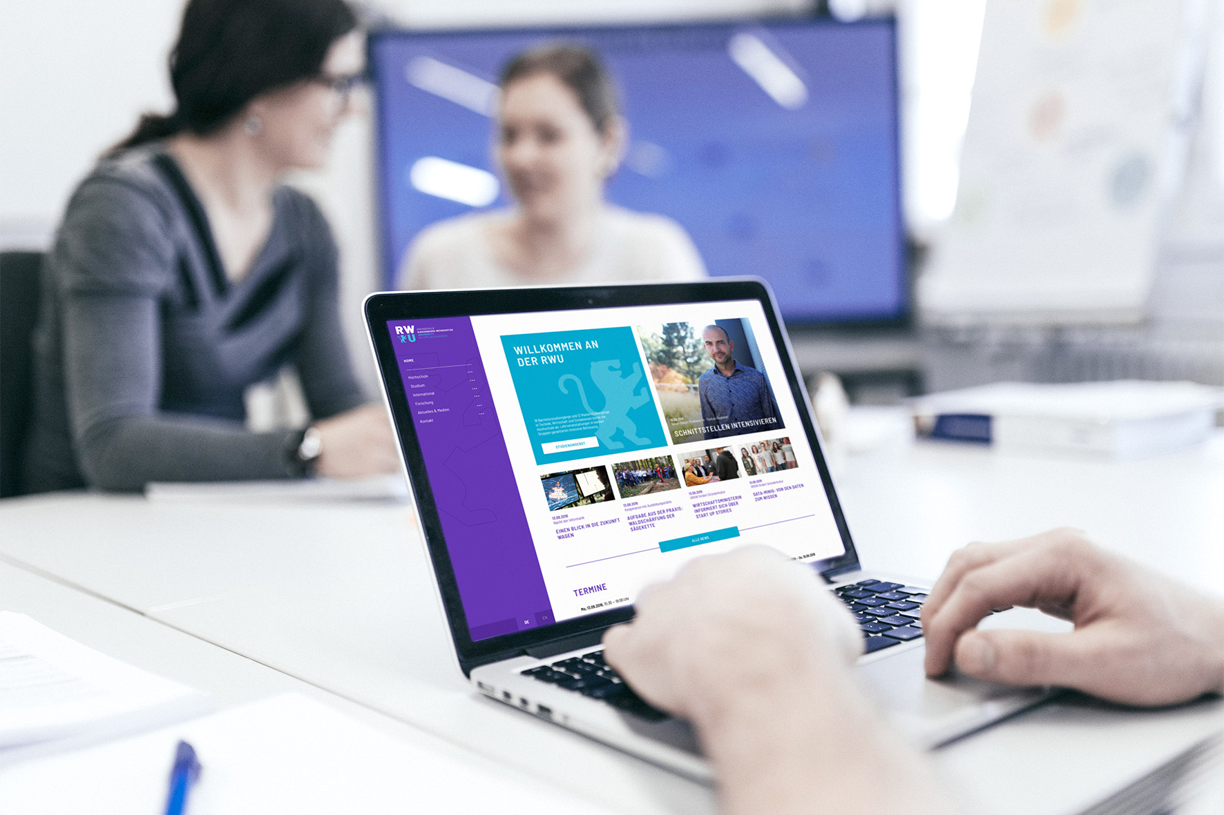Schnell nach dem Projektstart war den Verantwortlichen klar, mit einer neuen Website ist es nicht getan. Alles hängt mit allem zusammen. Und so wurden eineinhalb Jahre lang viele Steine auf dem Campus umgedreht: Logo, Farben und Schriften, Magazin und Flyer, Briefpapier und Visitenkarten, Plakate und Anzeigen, Fahnen und Messestände.