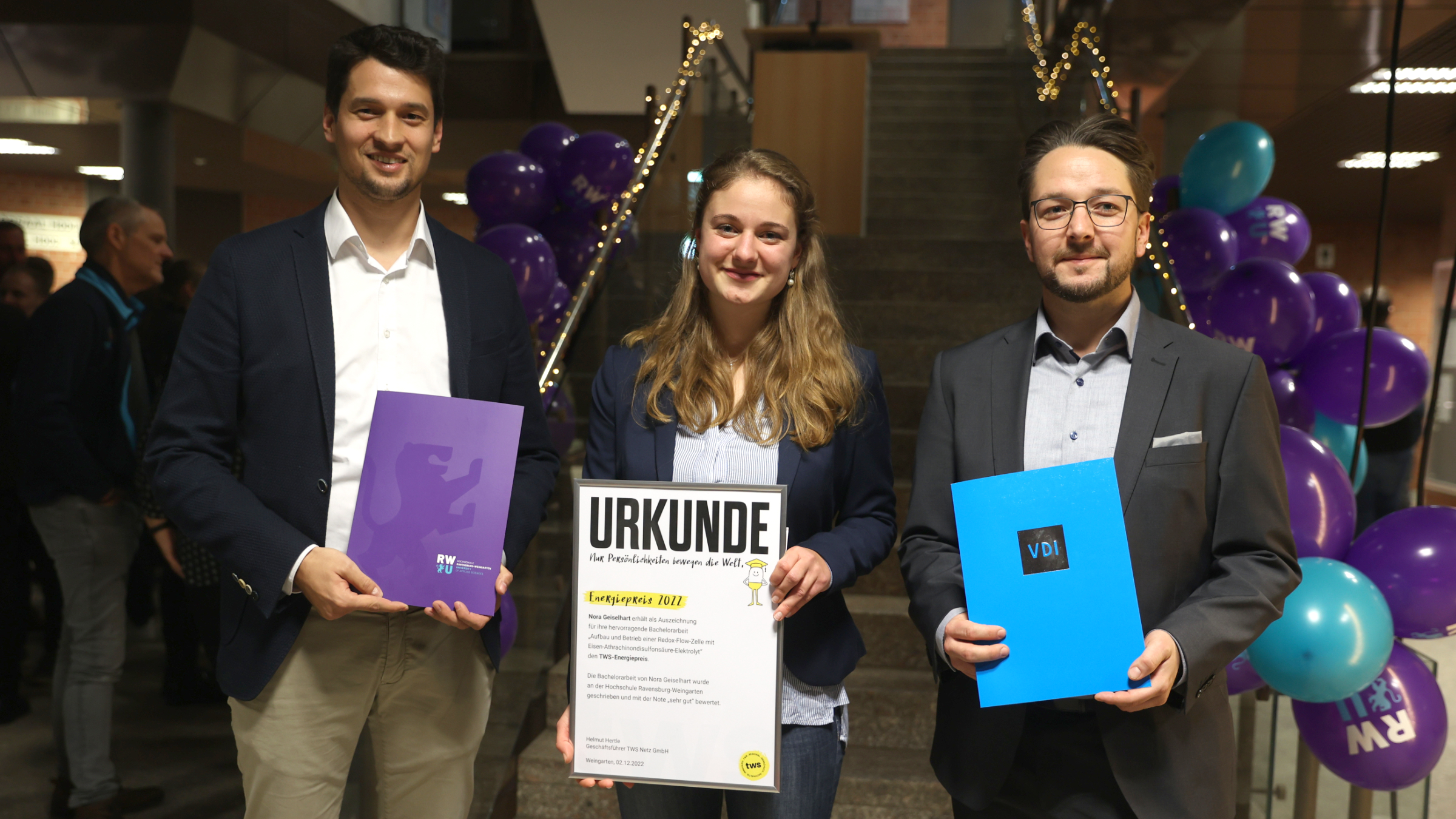 Der tws-Energiepreis ging an Nora Geiselhart. Sie studierte Energie- und Umwelttechnik und beschäftigte sich in ihrer Bachelorarbeit mit dem Aufbau und Betrieb einer Redox-Flow-Batterie. „Die Themen Energieversorgung und