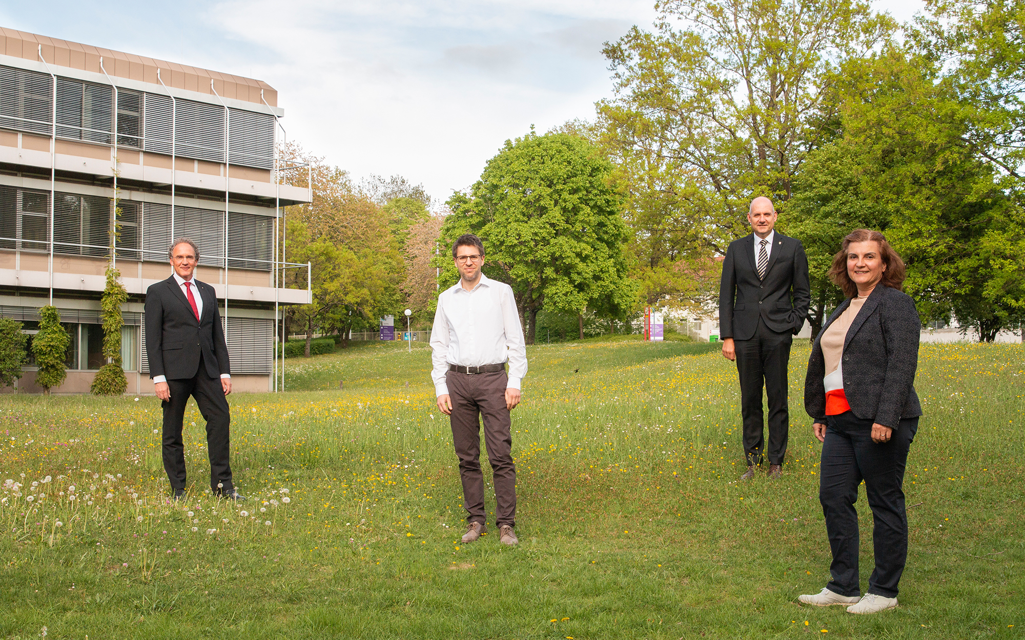 - Wechsel im Prorektorat der RWU. (v.l.n.r.) Dr. Wolfgang Pfeiffer, Professor Dr. Sebastian Mauser, Professor Dr. Thomas Spägele, Professorin Dr. Zerrin Harth.