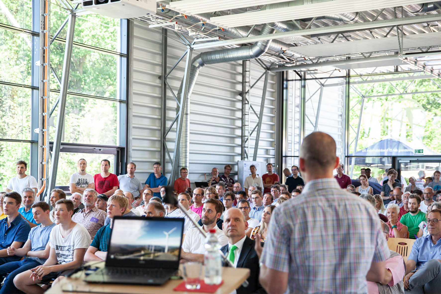 Als erster Redner schilderte Dr. Jörg Wind von der Daimler AG die Vor- und Nachteile von Batterie- und Brennstoffzellenantrieben. Bei der Brennstoffzelle, die die gespeicherte chemische Energie in Form von Wasserstoff in elektrische Energie umwandelt, liege der Vorteil vor allem in der großen Reichweite. Ein Problem hierbei sei jedoch das noch schwach ausgebaute Tankstellennetz. Hingegen sei die Batterie bezogen auf den Wirkungsgrad des Gesamtantriebes unschlagbar und „bietet beispielsweise für Menschen mit einer Solaranlage auf dem Dach viele Vorteile“, so Jörg Wind.