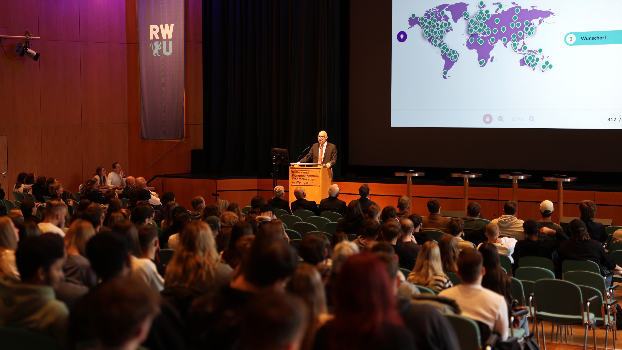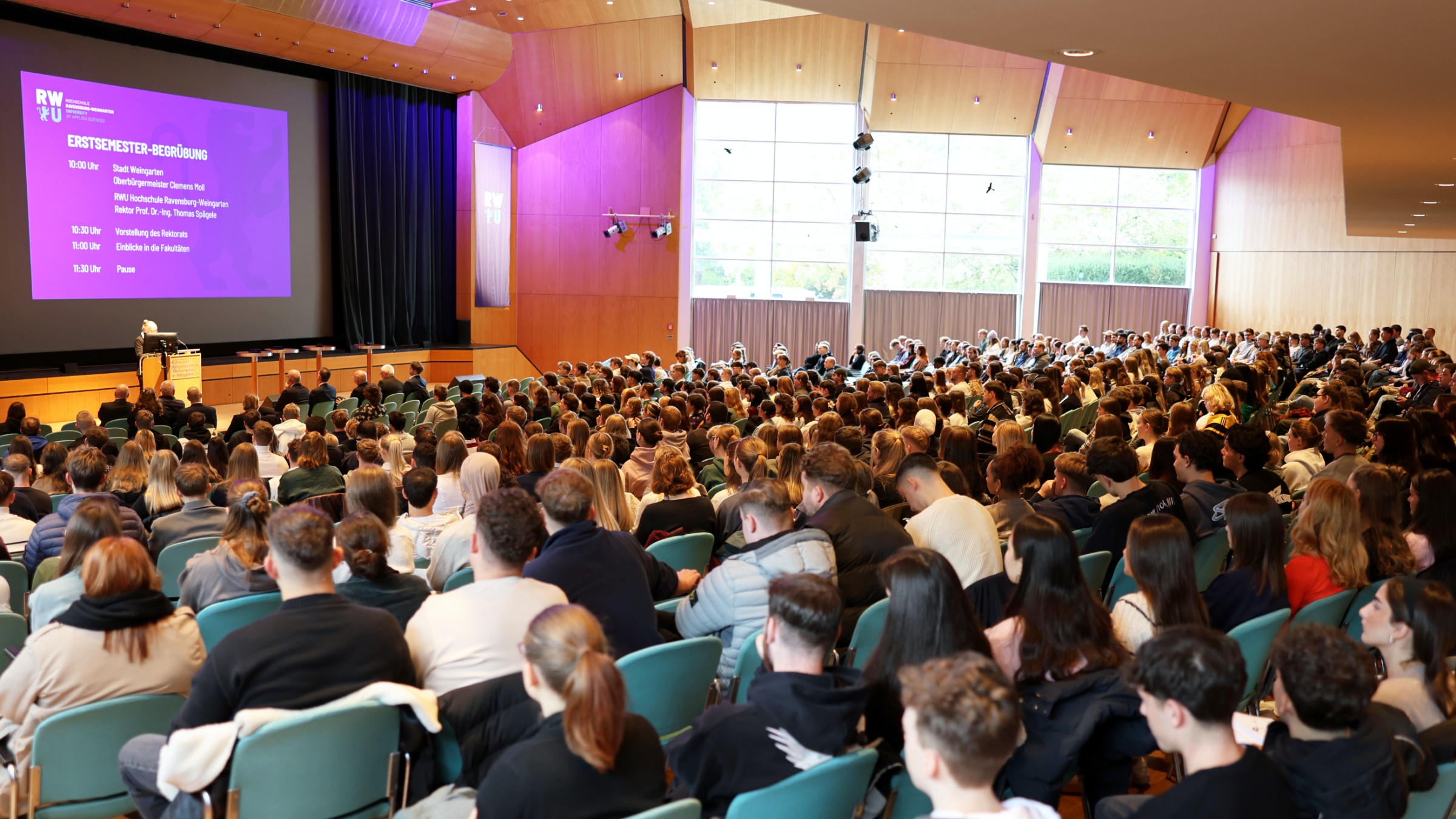 Zum Start ins Wintersemester 2025/2026 begrüßte die RWU  im Kultur- und Kongresszentrum Weingarten 720 Erstsemester.